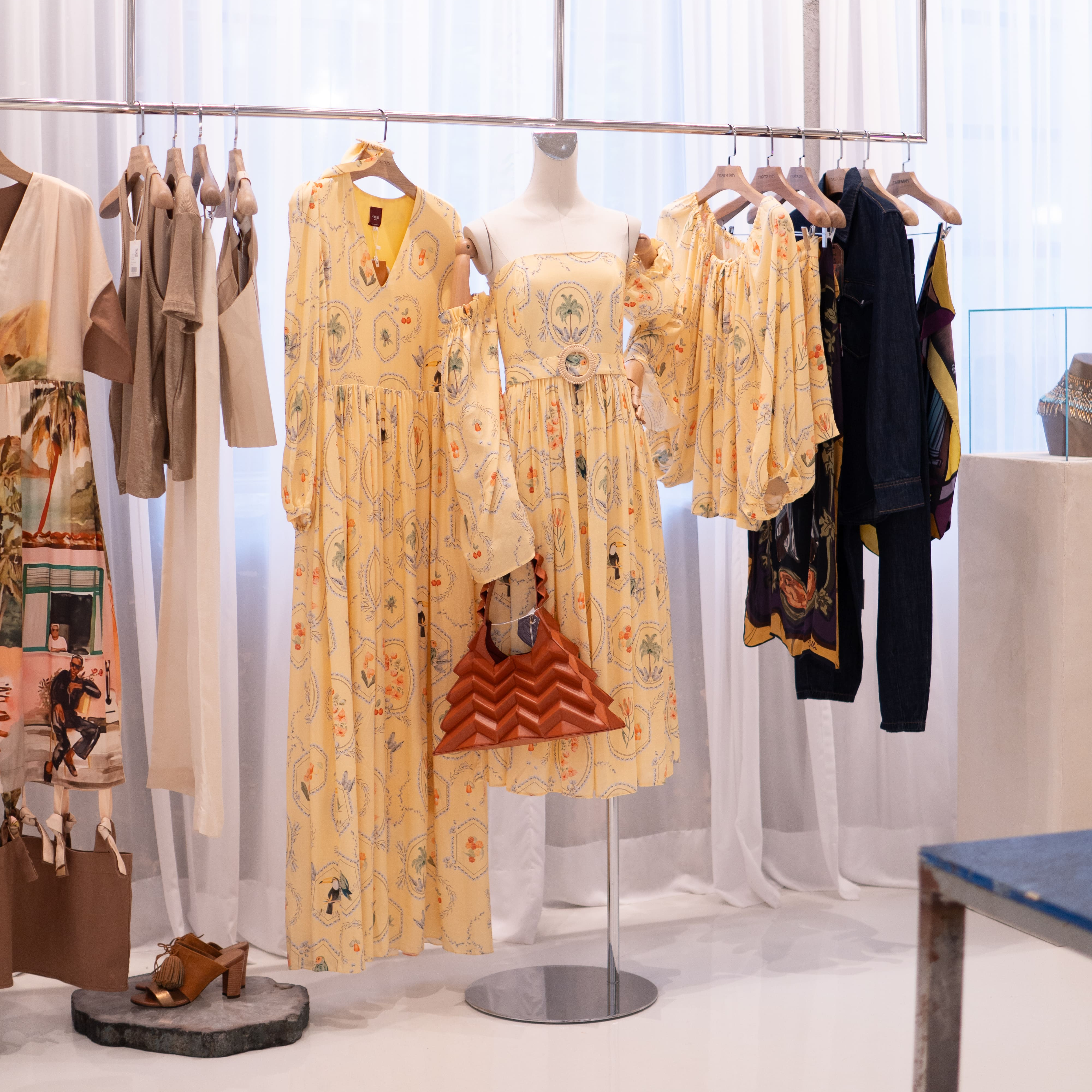 Vestido tomara que caia estampa molduras – mangas removíveis – Rosa Pêssego