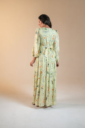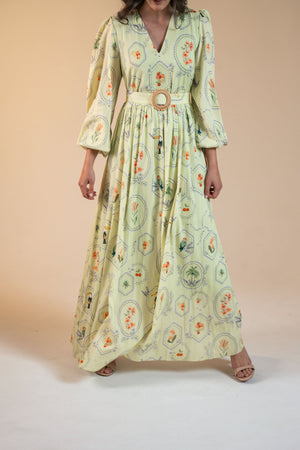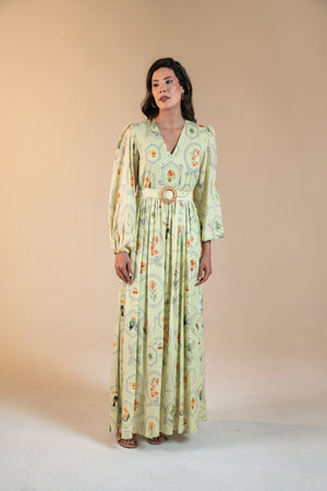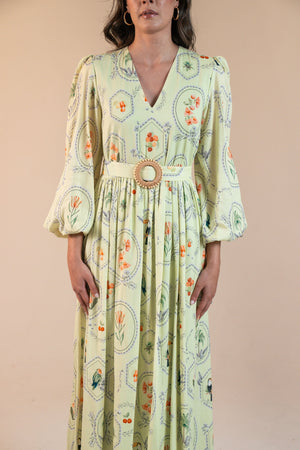 Vestido Marcela Maxi Estampa Molduras - Menta
