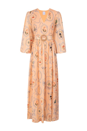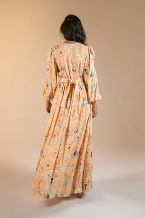 Vestido Marcela Maxi Estampa Molduras - Pêssego