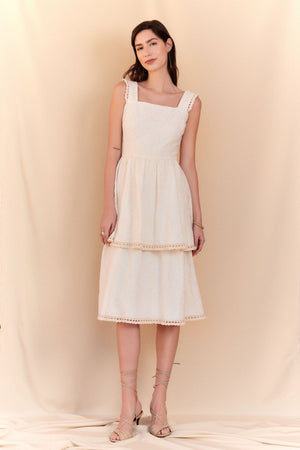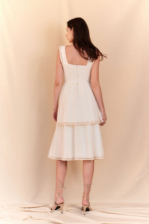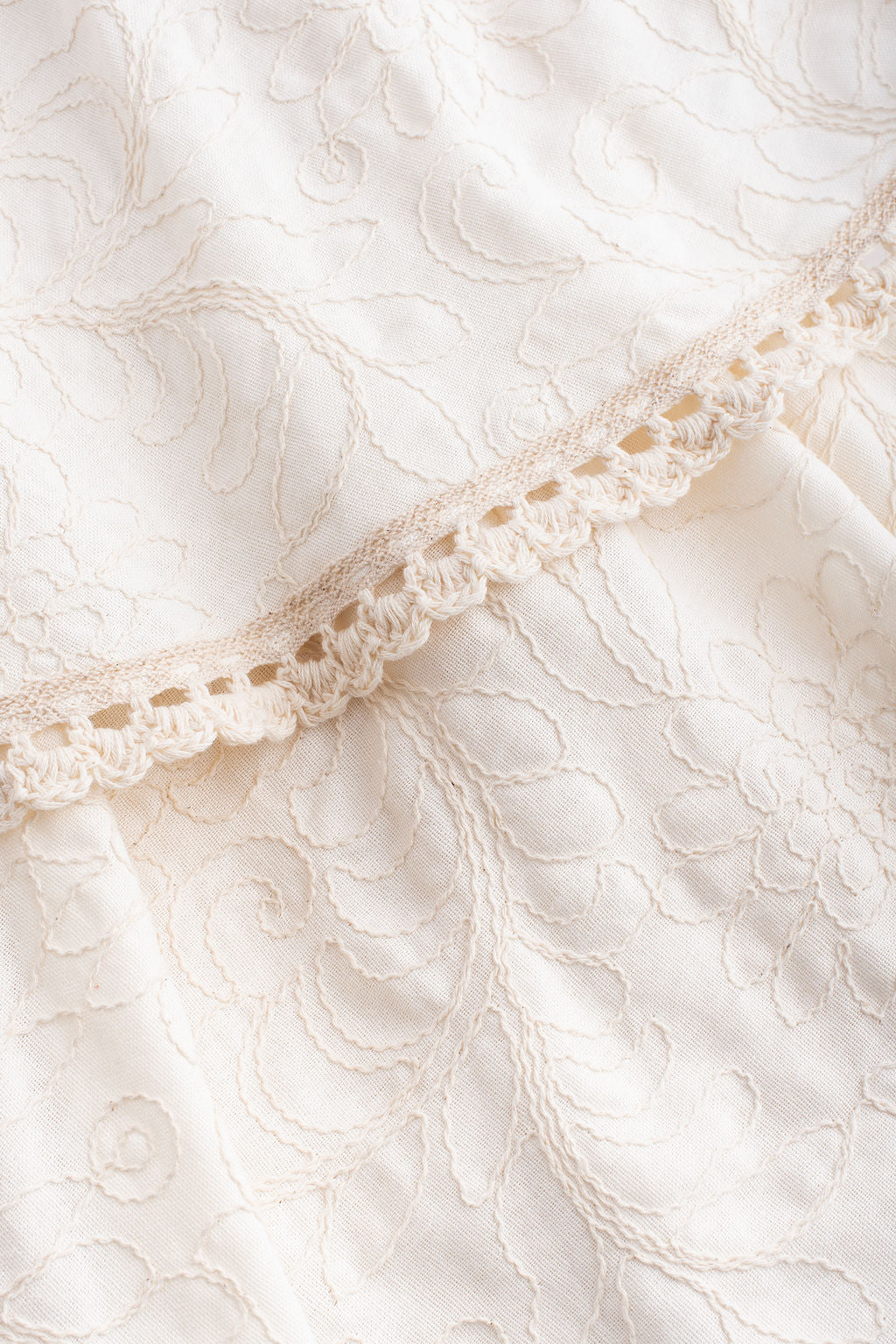 Entregue-se à elegância romântica do nosso VESTIDO MIDI DE CROCHÊ BORDADO LUISA. Feito de uma mistura luxuosa de linho e viscose, este vestido apresenta delicados bordados de flores de algodão e acabamentos em crochê. Com costuras francesas e forro completo, este vestido exala sofisticação e charme.
