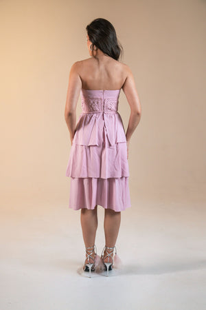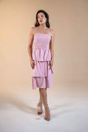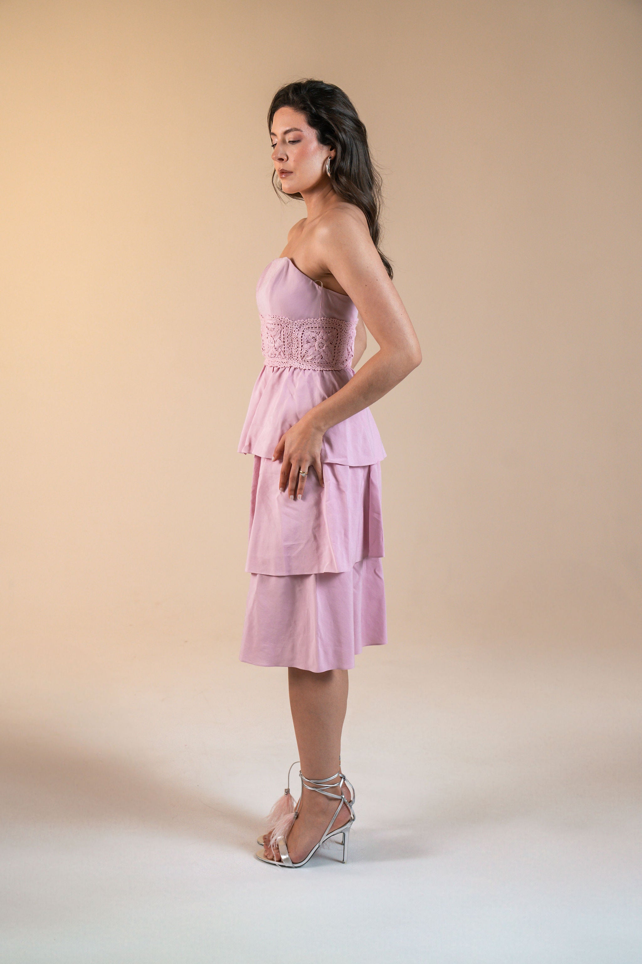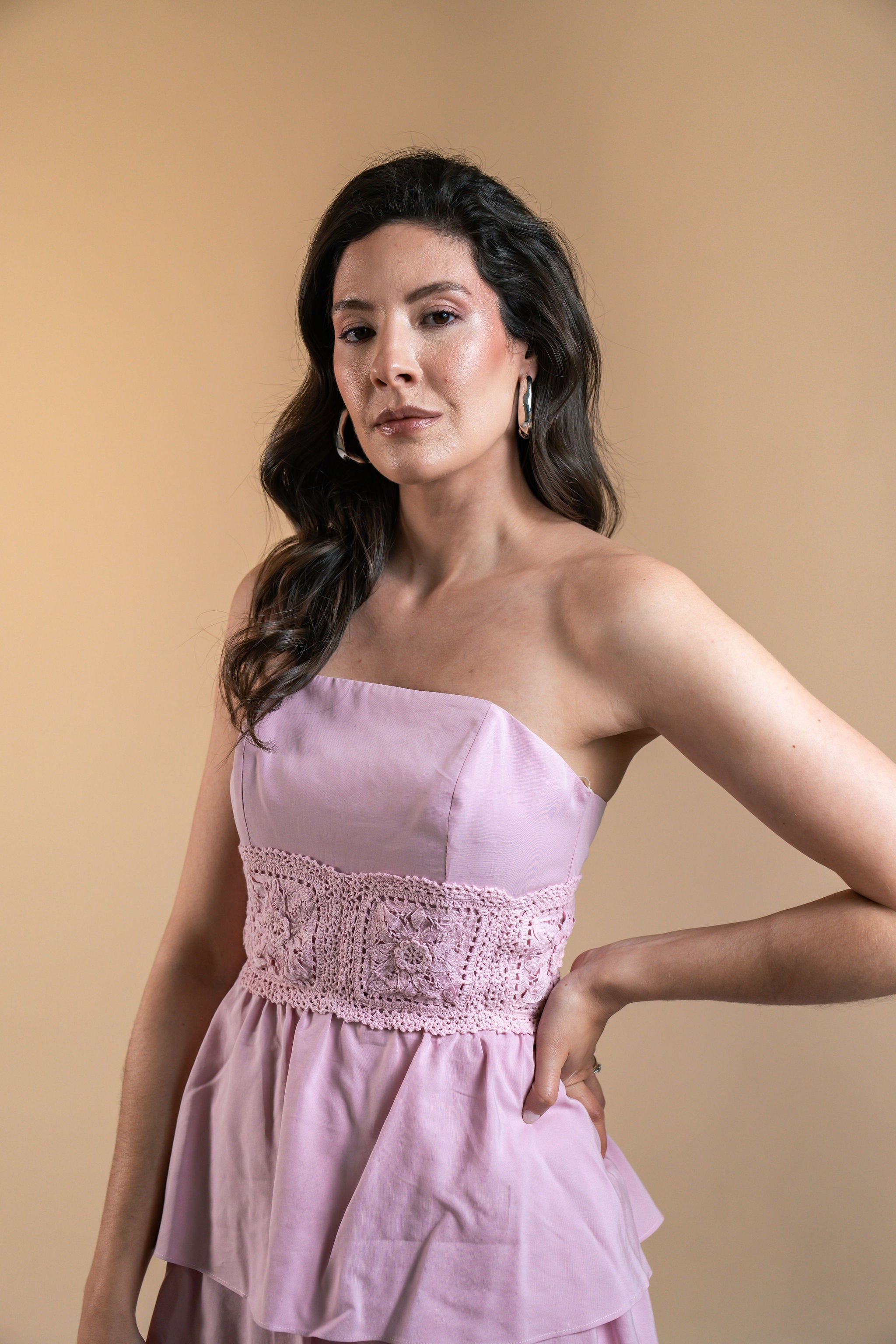 Vestido crochê Tomara que caia em camadas - Rosa Lavanda