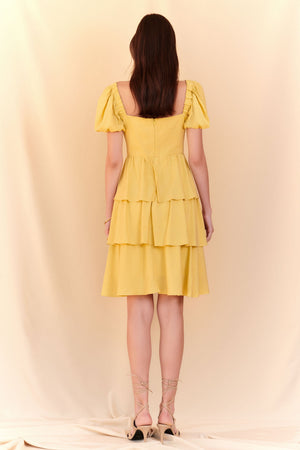 Vestido Flores 3D com camadas - Amarelo Manteiga