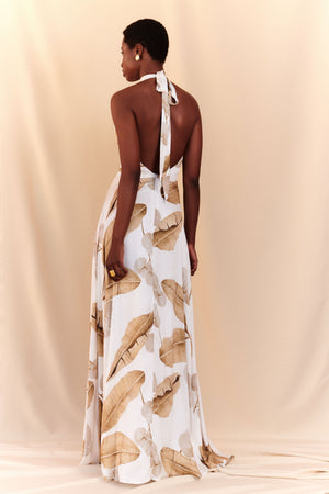 Apresentando o luxuoso DRESS BIANCA comprimento maxi. Feito de cetim de viscose premium com um toque de seda, este vestido apresenta uma estampa exclusiva pintada à mão e acabamentos requintados de costura francesa. Cada peça é meticulosamente trabalhada em nosso ateliê, tornando-a uma adição verdadeiramente exclusiva e luxuosa ao seu guarda-roupa.