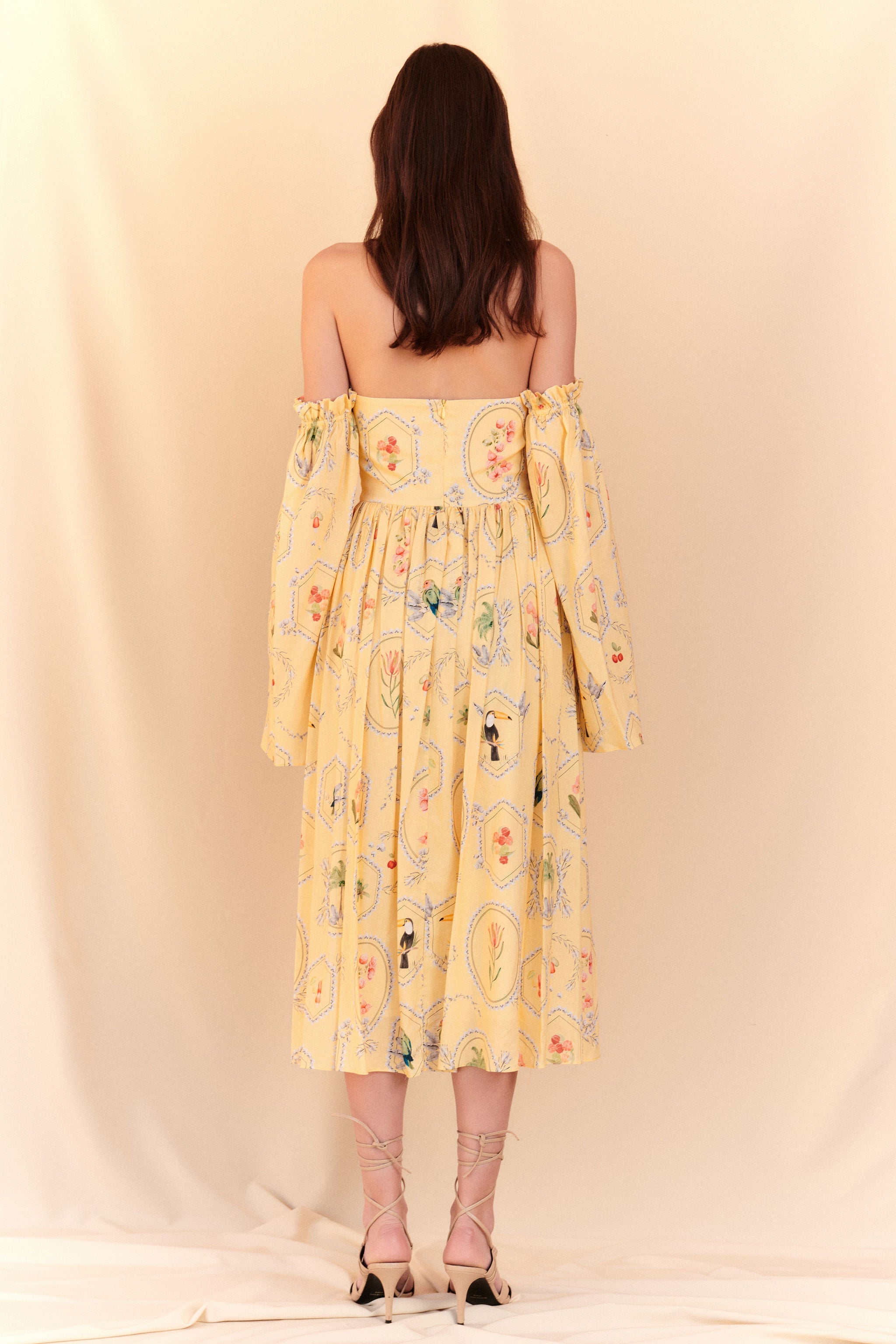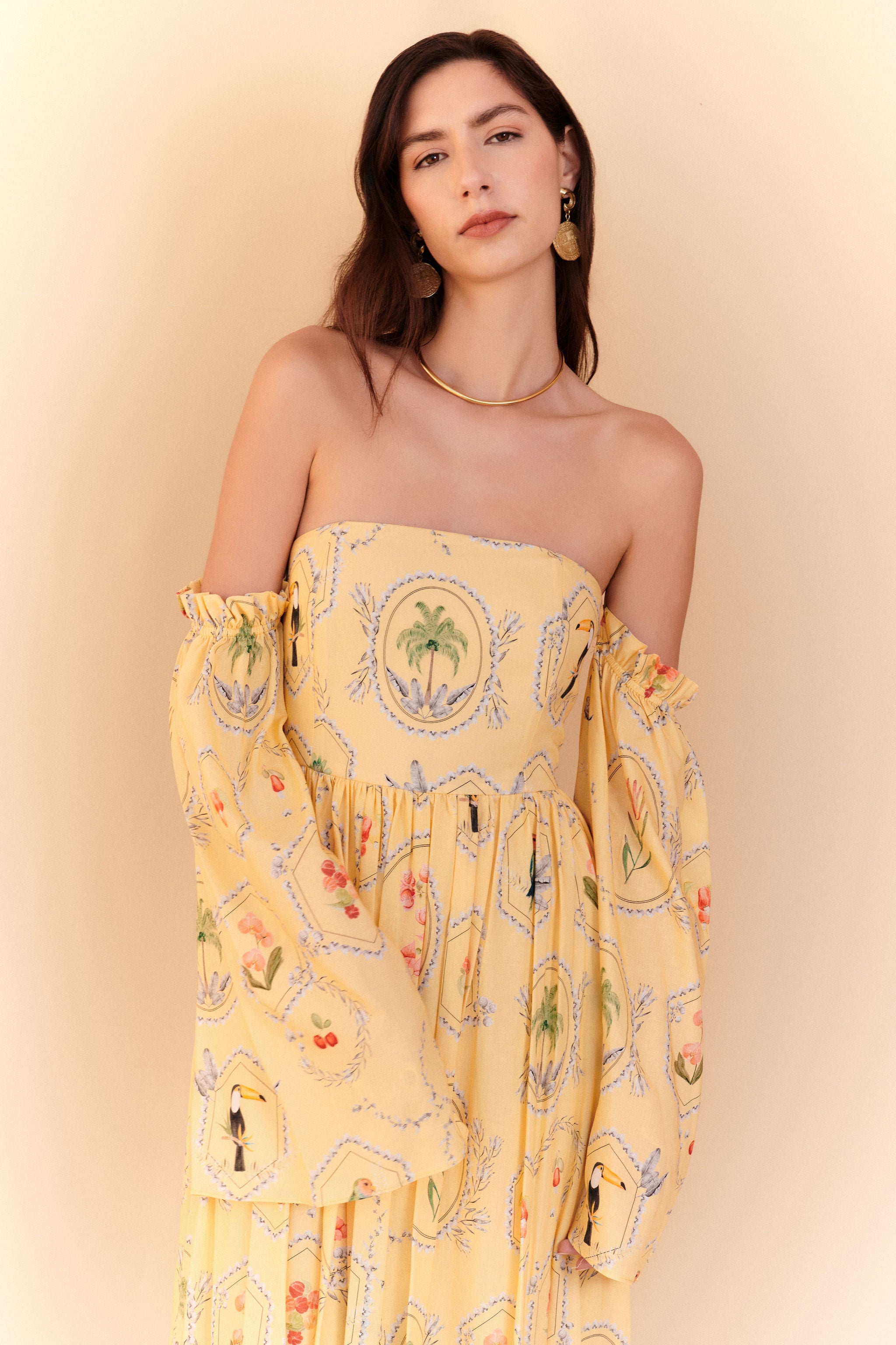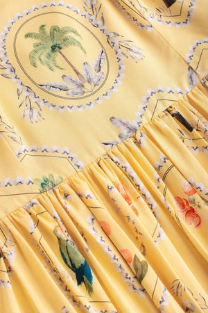 Vestido Tomara que caia Estampa Molduras – mangas removíveis - Amarelo manteiga